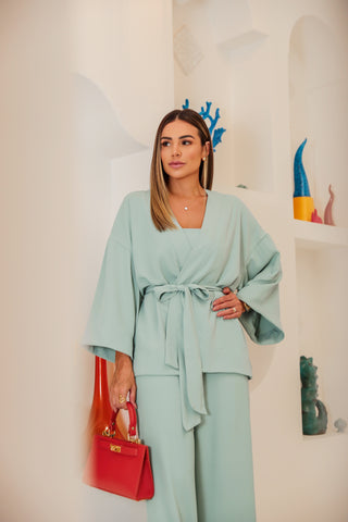 O Kimono Amalfi é uma peça sofisticada e elegante, Disponível nas cores nude, vinho e azul, é perfeito para completar qualquer look com estilo e leveza.